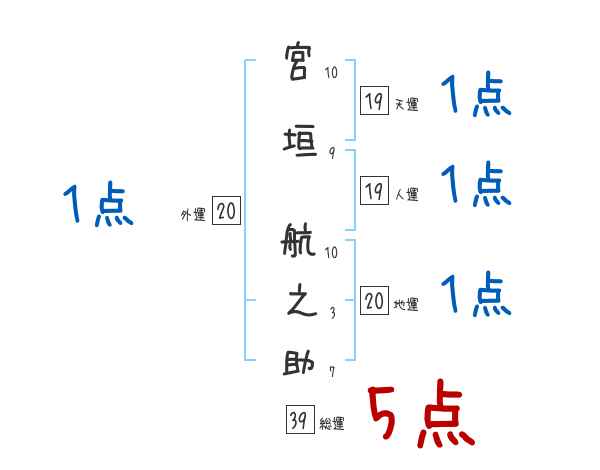 宮垣航之助さんの画数の鑑定結果