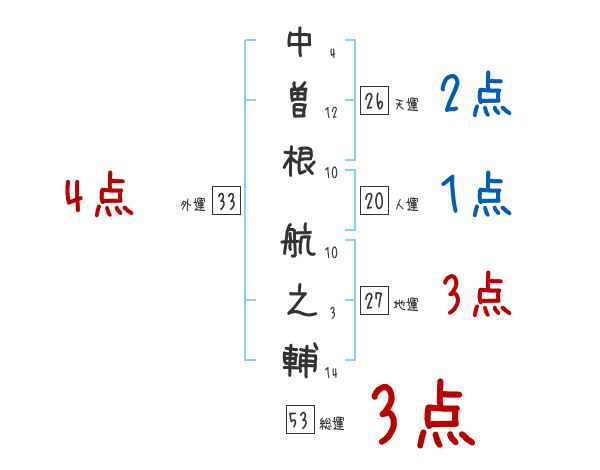 中曽根航之輔さんの画数の鑑定結果