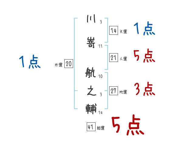 川嵜航之輔さんの画数の鑑定結果