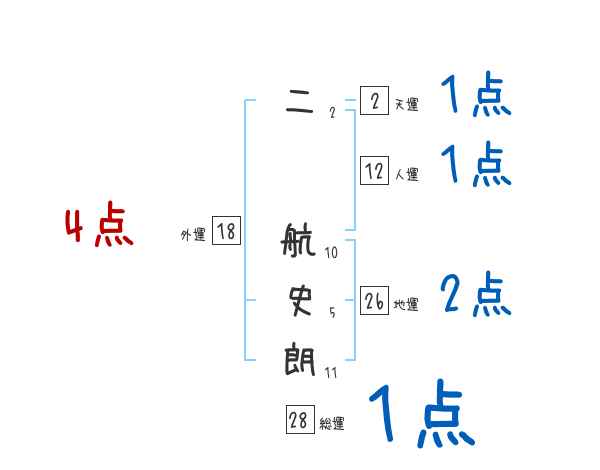 二航史朗さんの画数の鑑定結果
