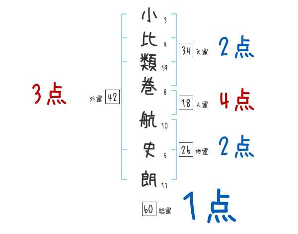 人運![]() | 小比類巻航史朗さんの人運は18画の4つ星!情熱的で剛気。忍耐力があり信頼される。 性格や才能などを表す2番目に重要な運勢です。人間関係や協調性、社会的な成功に影響します。主に20歳から50歳ぐらいまでの中年期の運勢を表します。 |