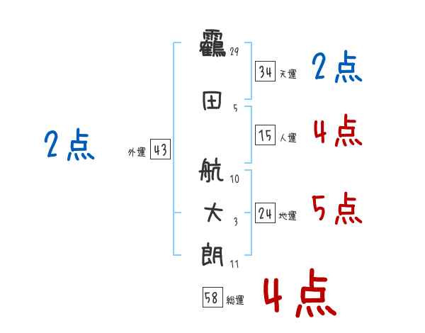 靏田航大朗さんの画数の鑑定結果