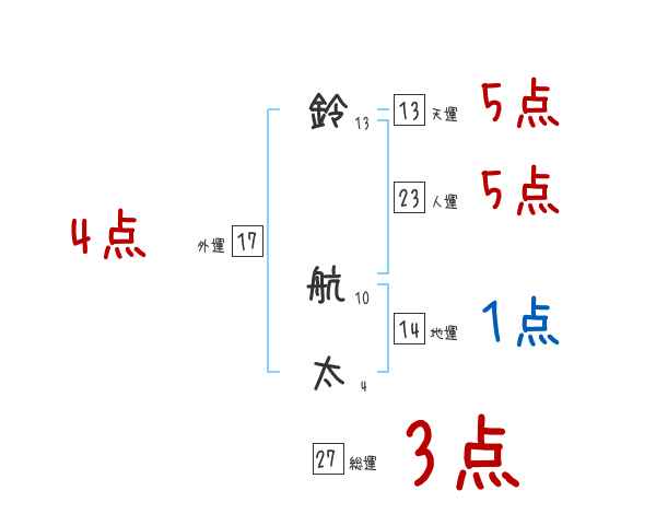 鈴航太さんの画数の鑑定結果