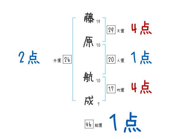 藤原航成さんの画数の鑑定結果