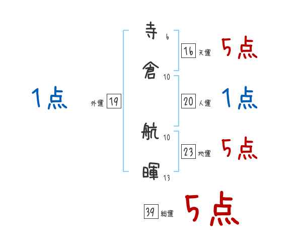 寺倉航暉さんの画数の鑑定結果