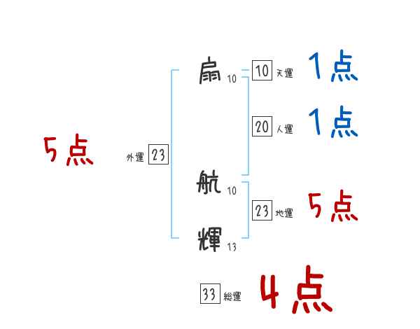 扇航輝さんの画数の鑑定結果