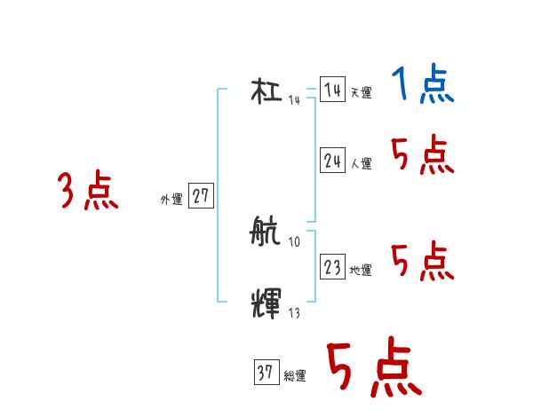 杠航輝さんの画数の鑑定結果