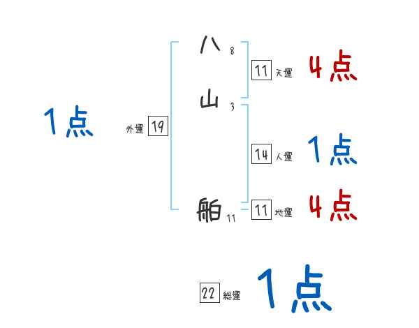 八山舶さんの画数の鑑定結果