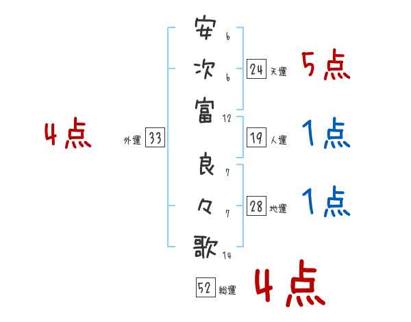 安次富良々歌さんの画数の鑑定結果