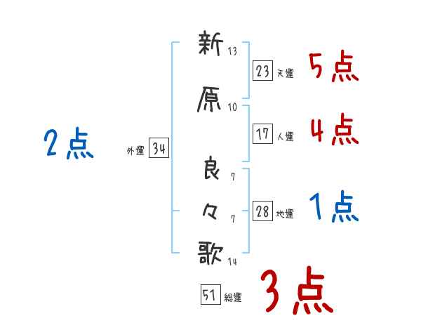 新原良々歌さんの画数の鑑定結果