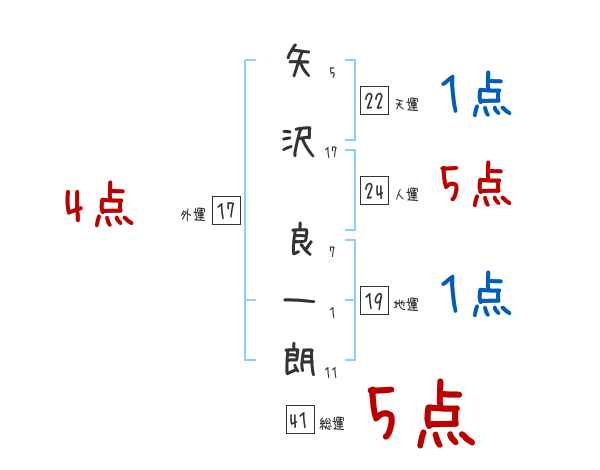 矢沢良一朗さんの画数の鑑定結果