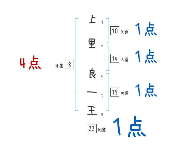 上里良一王さんの画数の鑑定結果
