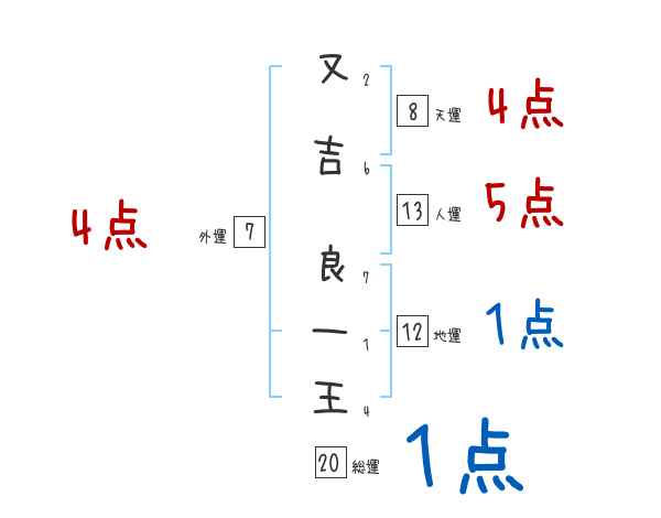 又吉良一王さんの画数の鑑定結果