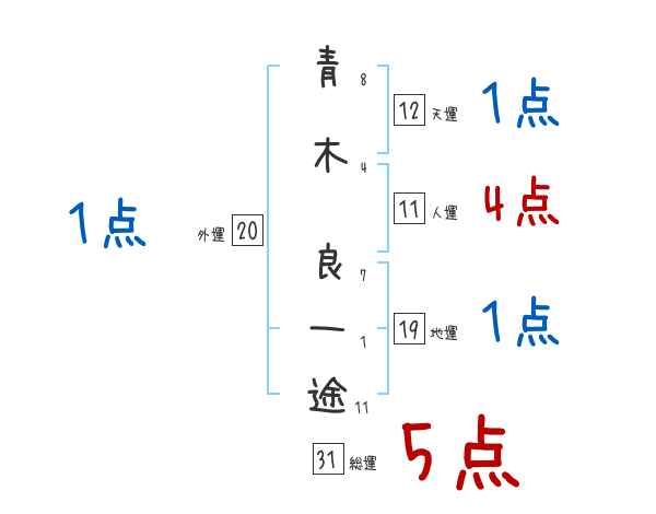 青木良一途さんの画数の鑑定結果