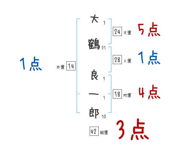 大鶴良一郎さんの画数の鑑定結果