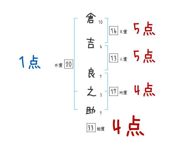 倉吉良之助さんの画数の鑑定結果