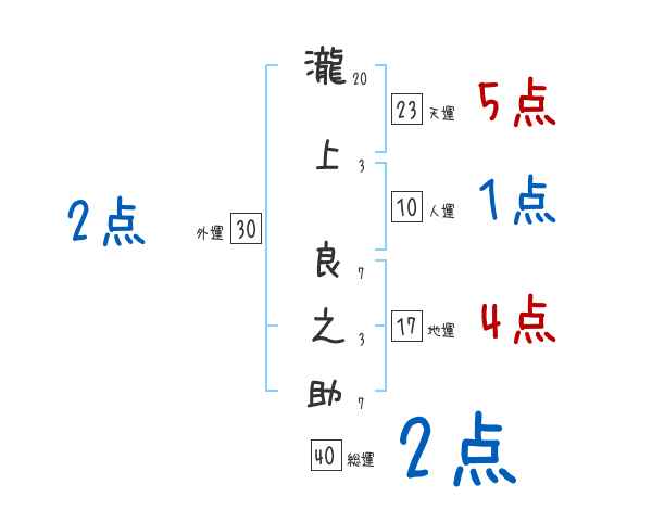 瀧上良之助さんの画数の鑑定結果
