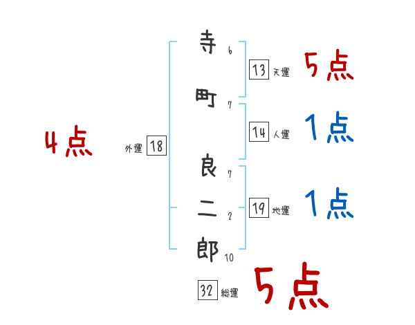 寺町良二郎さんの画数の鑑定結果