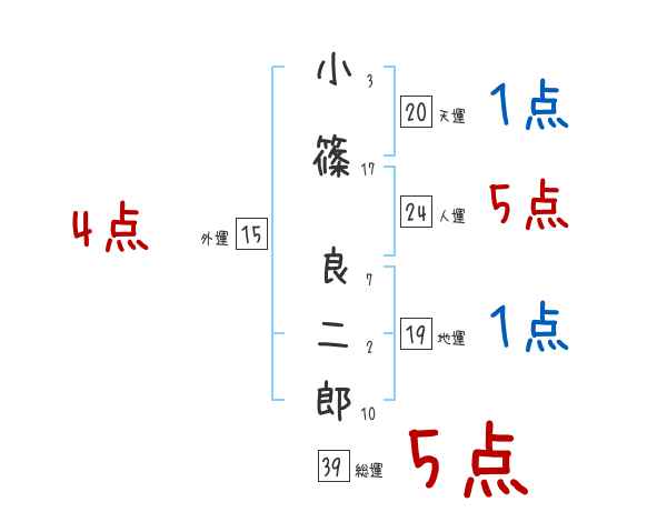 小篠良二郎さんの画数の鑑定結果