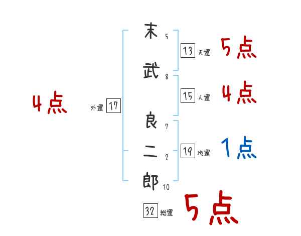 末武良二郎さんの画数の鑑定結果