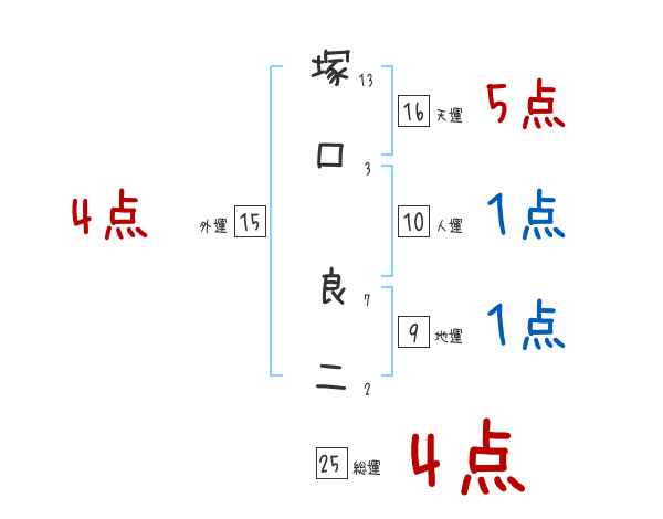 塚口良二さんの画数の鑑定結果