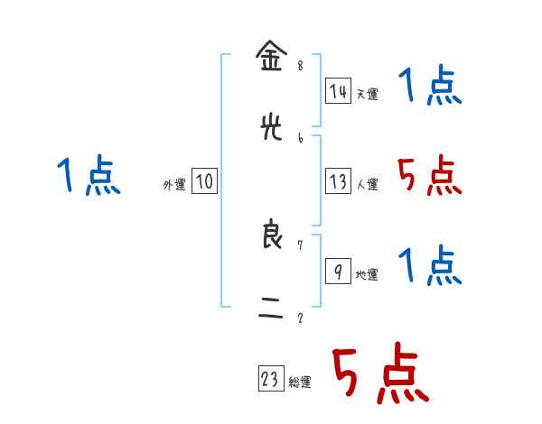 金光良二さんの画数の鑑定結果