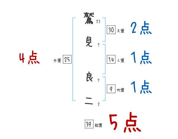 総運![]() | 鷲見良二さんの総運は39画の5つ星!社交性に優れ人望が厚い。人の上に立ち成功する。 あなたの人生を表す1番重要な運勢です。生涯を通じて影響する総合運となり、主に50歳以降の晩年期に影響を及ぼします。 |