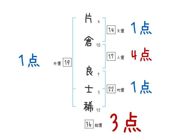 総運![]() | 片倉良士稀さんの総運は36画の3つ星!先見性が豊かです。多少神経質で苦労することも。 あなたの人生を表す1番重要な運勢です。生涯を通じて影響する総合運となり、主に50歳以降の晩年期に影響を及ぼします。 |