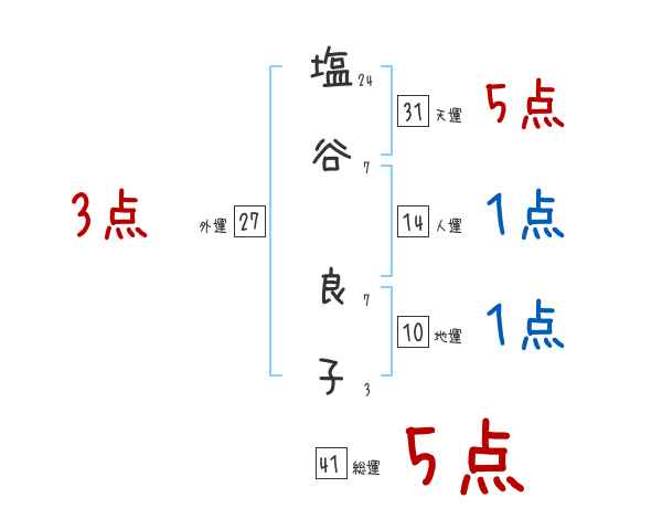 塩谷良子さんの画数の鑑定結果