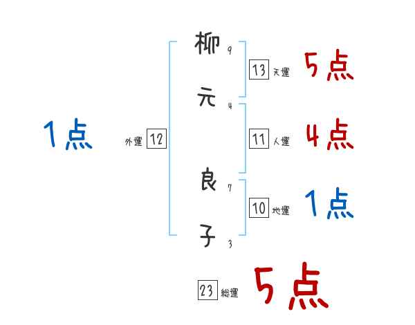 柳元良子さんの画数の鑑定結果
