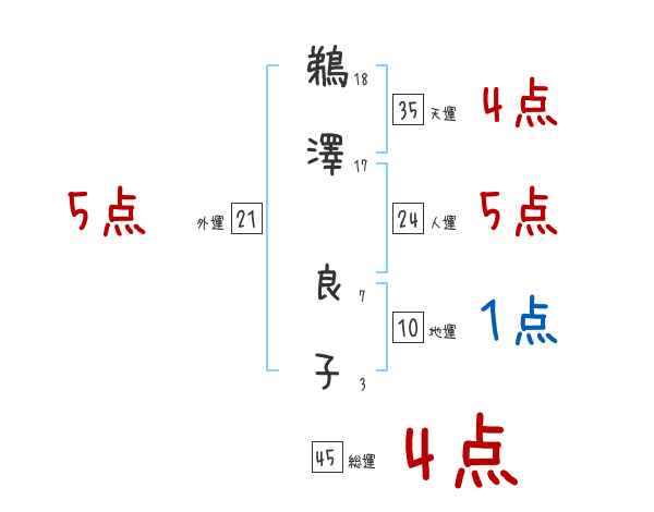 鵜澤良子さんの画数の鑑定結果