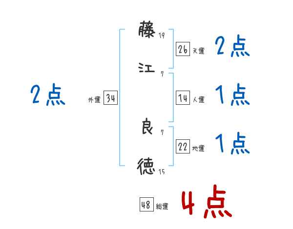 天運![]() | 藤江良徳さんの天運は26画の2つ星!波瀾万丈かも。信頼できる人を大事にしましょう。 家系が持つ宿命的な運勢を表します。祖先から受け継いだ苗字ですので自分の力が及びません。家柄を象徴します。 |