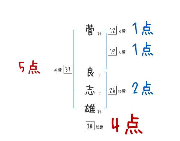 菅良志雄さんの画数の鑑定結果