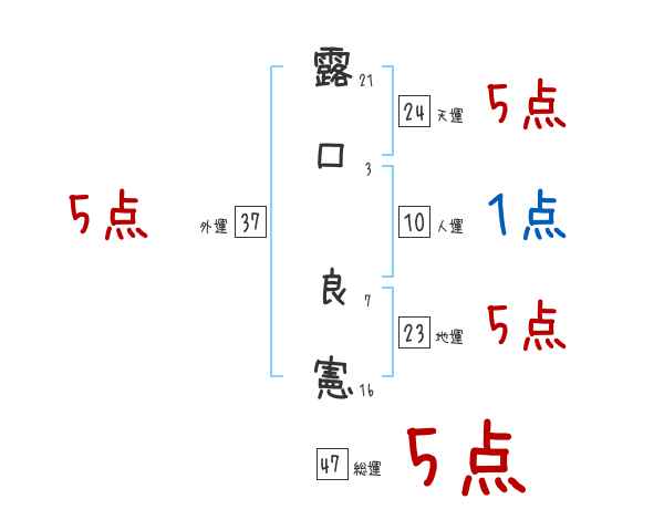 露口良憲さんの画数の鑑定結果