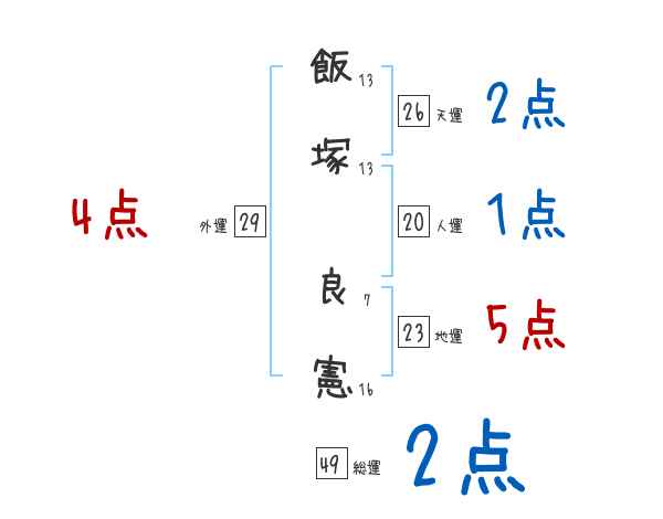 飯塚良憲さんの画数の鑑定結果