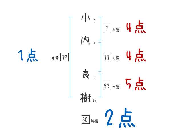 小内良樹さんの画数の鑑定結果