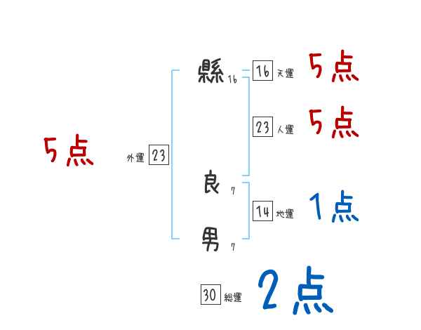縣良男さんの画数の鑑定結果