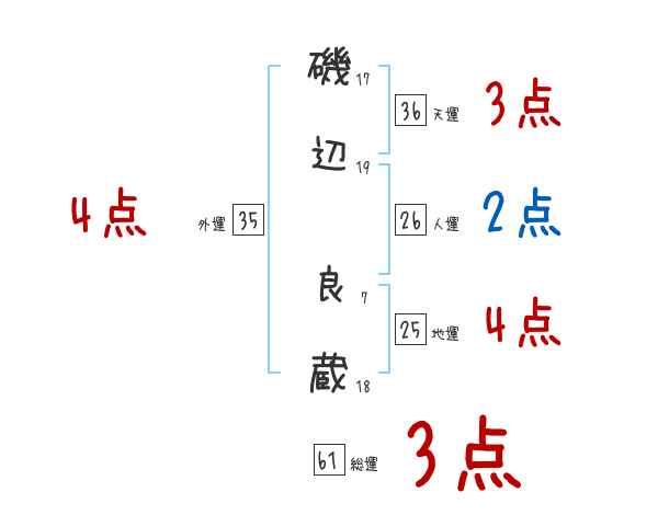 磯辺良蔵さんの画数の鑑定結果