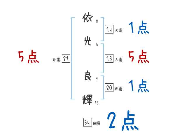 依光良輝さんの画数の鑑定結果