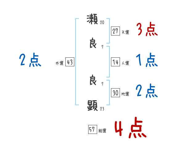 瀬良良顕さんの画数の鑑定結果