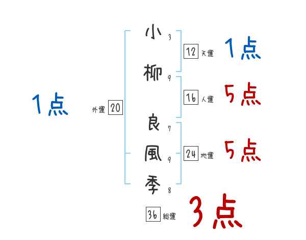 小柳良風季さんの画数の鑑定結果