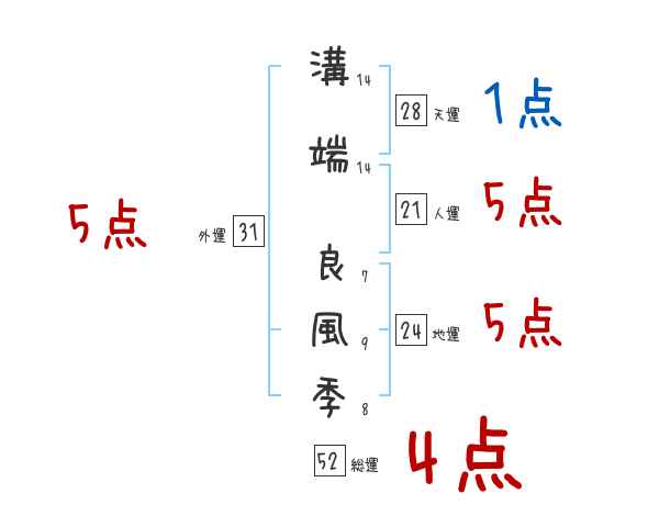 溝端良風季さんの画数の鑑定結果
