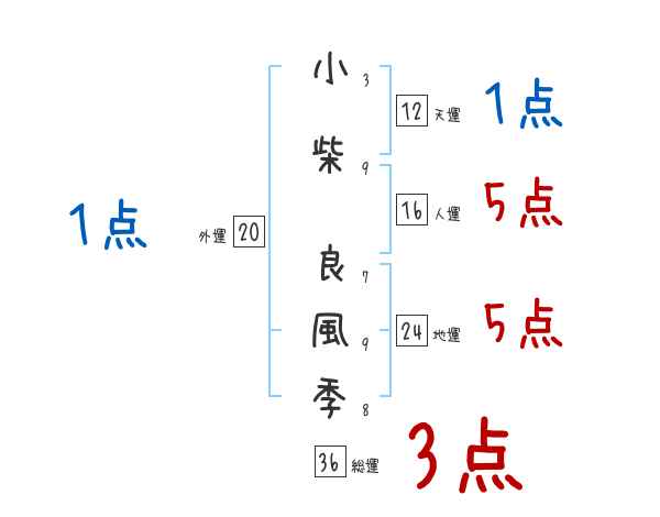 小柴良風季さんの画数の鑑定結果