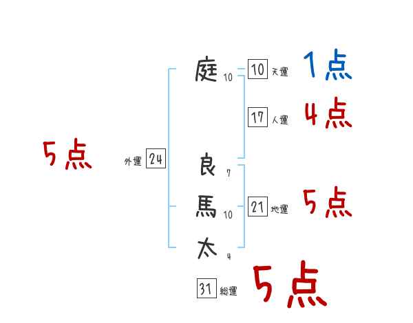 庭良馬太さんの画数の鑑定結果