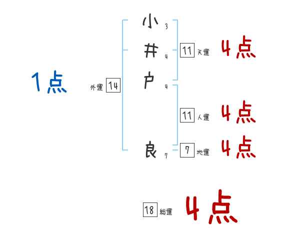 小井戸良さんの画数の鑑定結果
