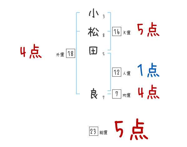 小松田良さんの画数の鑑定結果