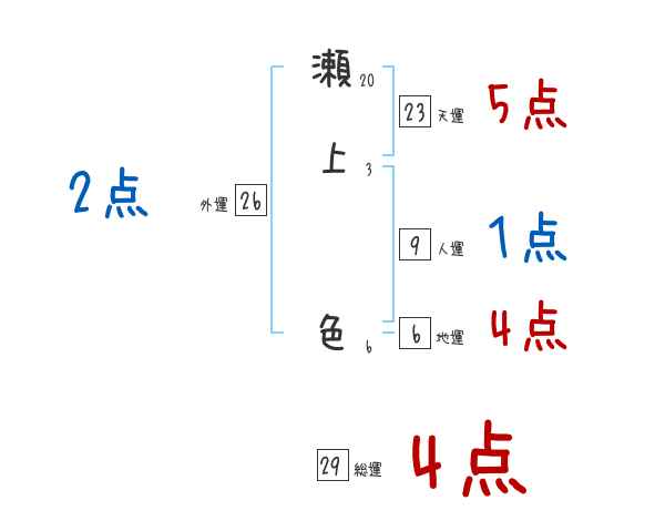 瀬上色さんの画数の鑑定結果