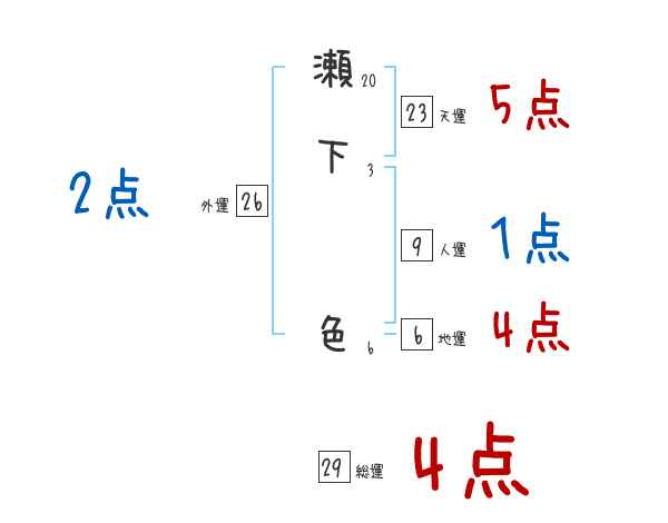 瀬下色さんの画数の鑑定結果