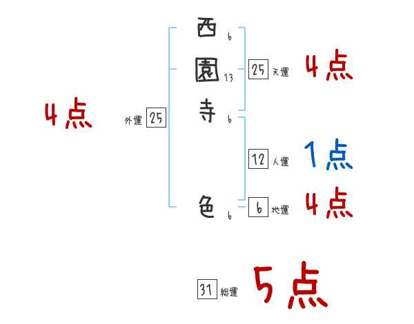 西園寺色さんの画数の鑑定結果