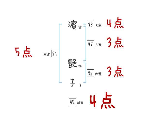 濵艶子さんの画数の鑑定結果